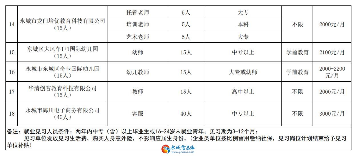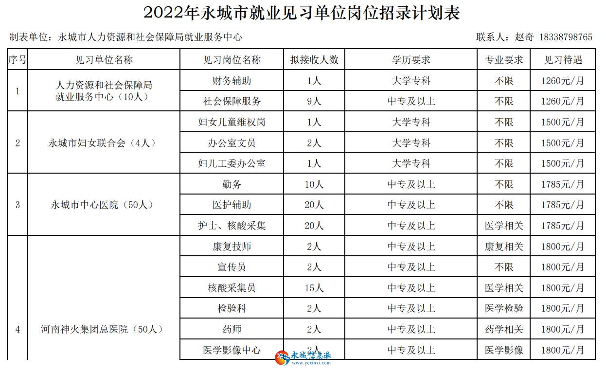 永城市人力資源和社會保障局 發(fā)布就業(yè)見習(xí)崗位啦!