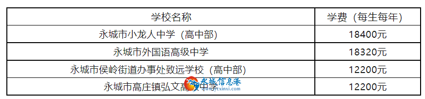 2023年秋季高一永城民辦普通高中學(xué)校學(xué)費(fèi)標(biāo)準(zhǔn)的公告