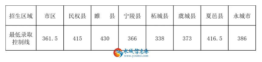 永城市2024年普通高中招生最低錄取控制線公布